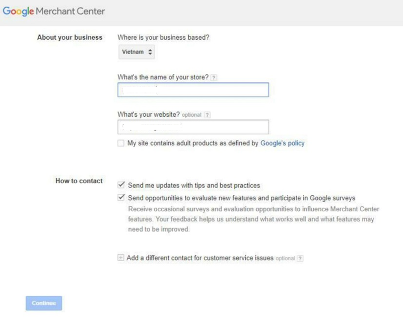 Điền đầy đủ thông tin yêu cầu vào Merchant Center