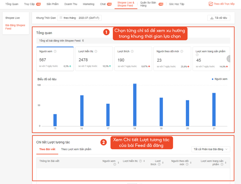 Ngoài ra, có thể xem Chi tiết lượt tương tác của các bài đăng Theo Bài viết hoặc Theo Lượt xem Sản Phẩm.