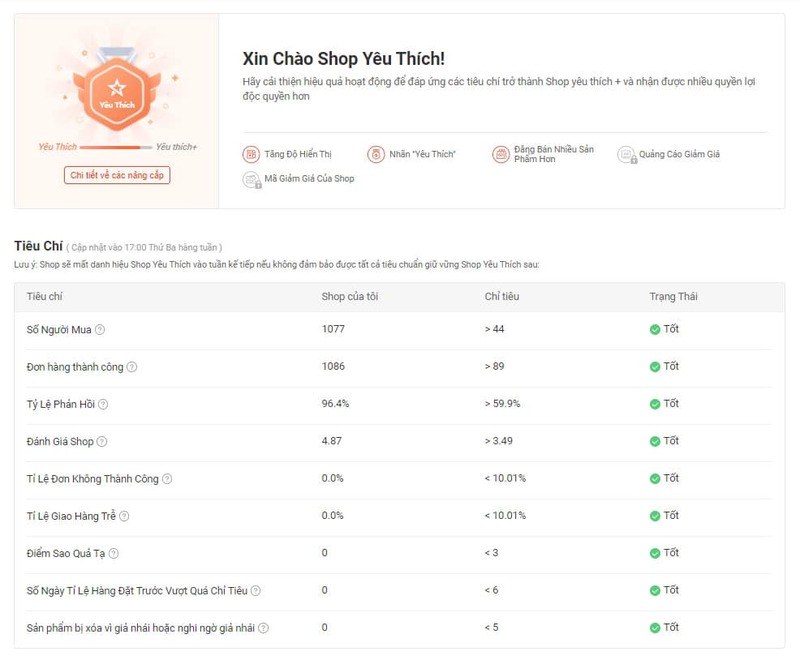 Shop cần thỏa các tiêu chí để được xét duyệt thành Shop Yêu Thích+