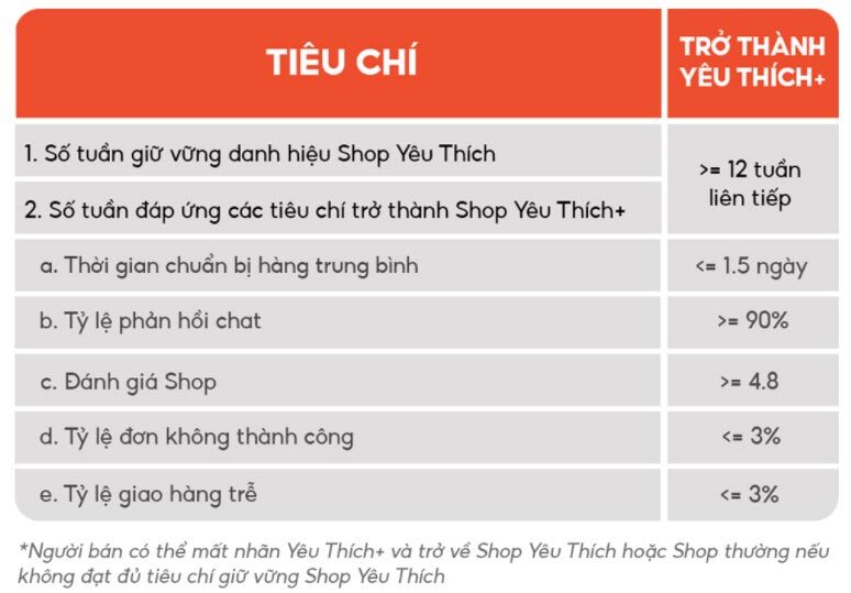 Điểm nổi bật/ các tiêu chí để trở thành của Shop Yêu Thích+: